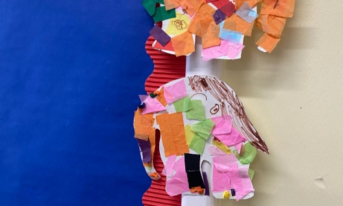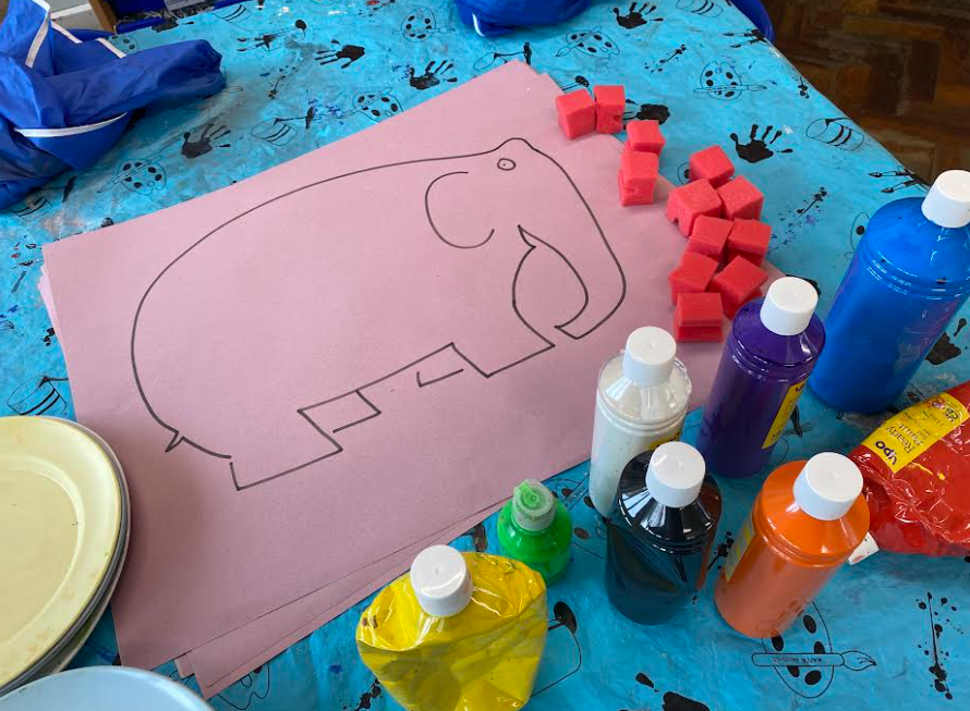 This week, we have been reading the classic children’s book “Elmer” by David McKee. We have been making our own small Elmers with tissue paper and also bigger Elmers by working together using sponges and paints to print with.