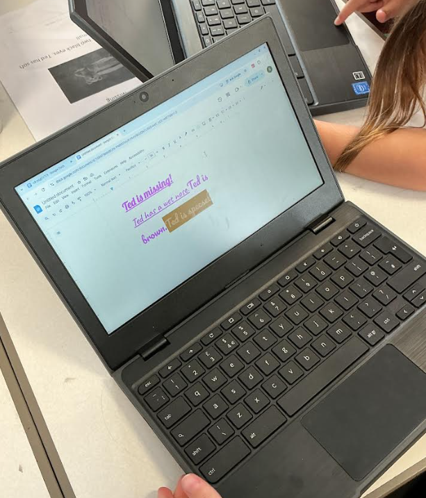 In Computing, we have been exploring the toolbar on a document processor. We have been typing a missing poster for Mrs Powley teddy bear called Ted. We explored changing the colour, size and font of our writing. Look at our interesting creations.