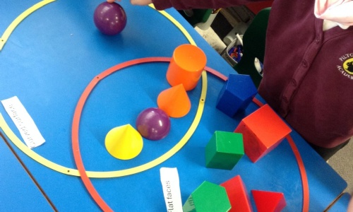We learnt about the properties of 3D shapes and explored which features different shapes shared. Working as a team, we sorted the shapes into different categories and discussed why some shapes could roll while others could not. We worked well together and successfully sorted all the shapes as a group.