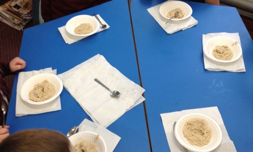 After reading the story of Goldilocks and the Three Bears, we made porridge in school.