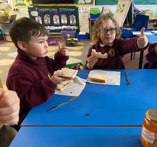 We also learnt how to use knives safely to cut our sandwiches. We talked about knife safety and how to hold and use them properly.