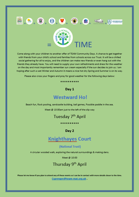Hope you all have a lovely weekend. A reminder that school will finish on Thursday next week as Friday is the Good Friday Bank Holiday.