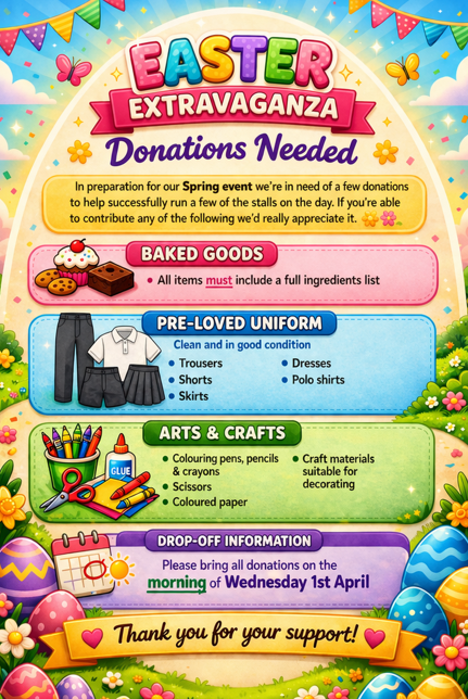 A reminder that the PTFA have organised an Easter Fayre for next Wednesday.